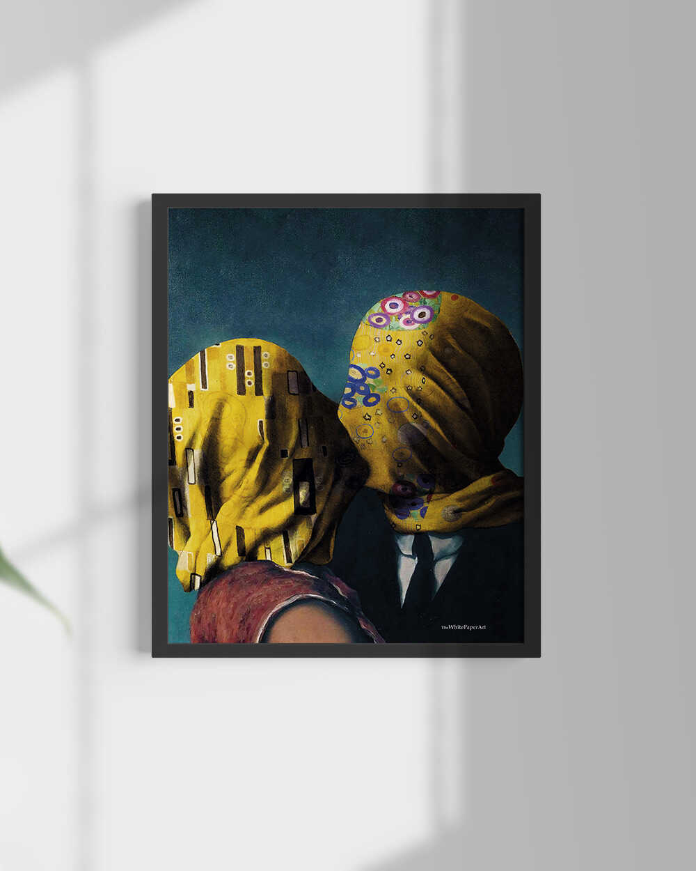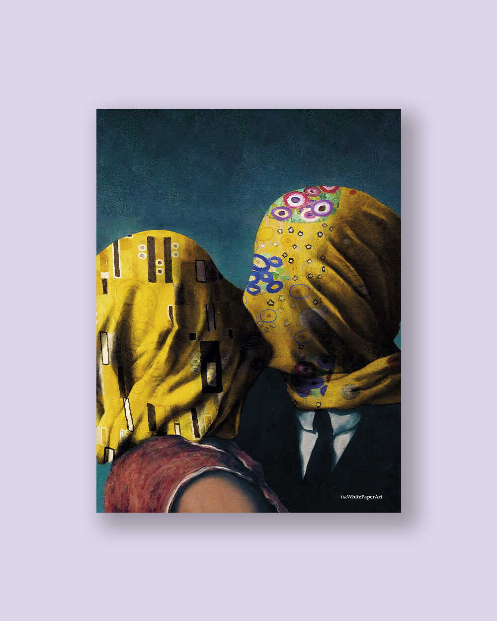 Reinterpretación de las obras “El Beso” de Gustav Klimt, y “Los amantes” deRené Magritte.